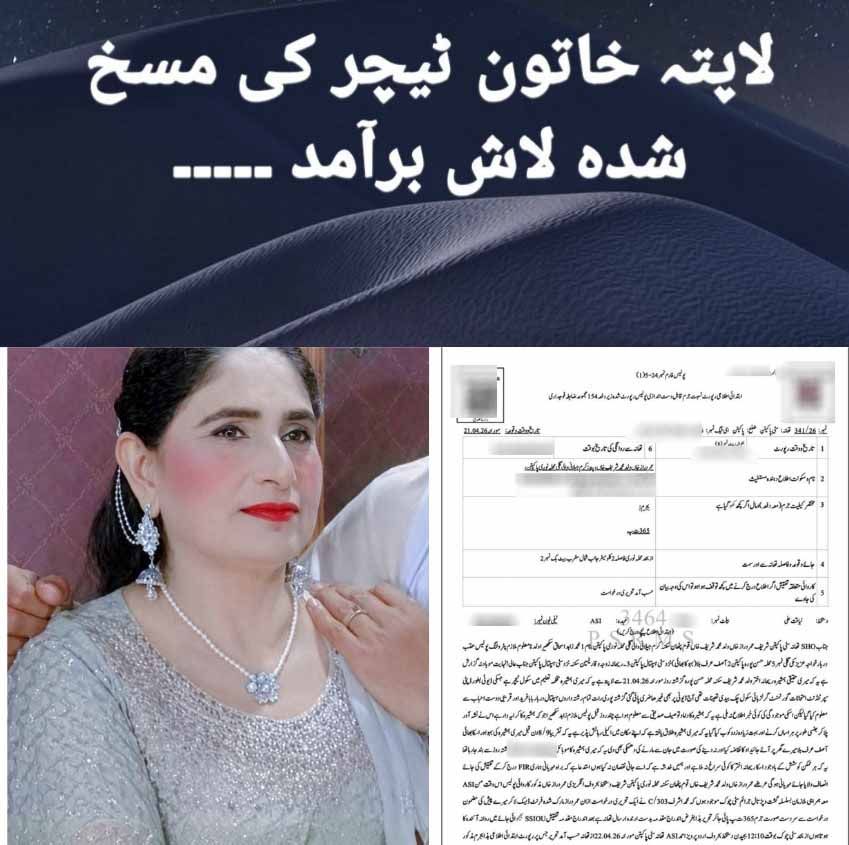 لاپتہ ٹیچر کی لاش برآمد… واقعہ نے علاقے کو سوگوار کر دیا